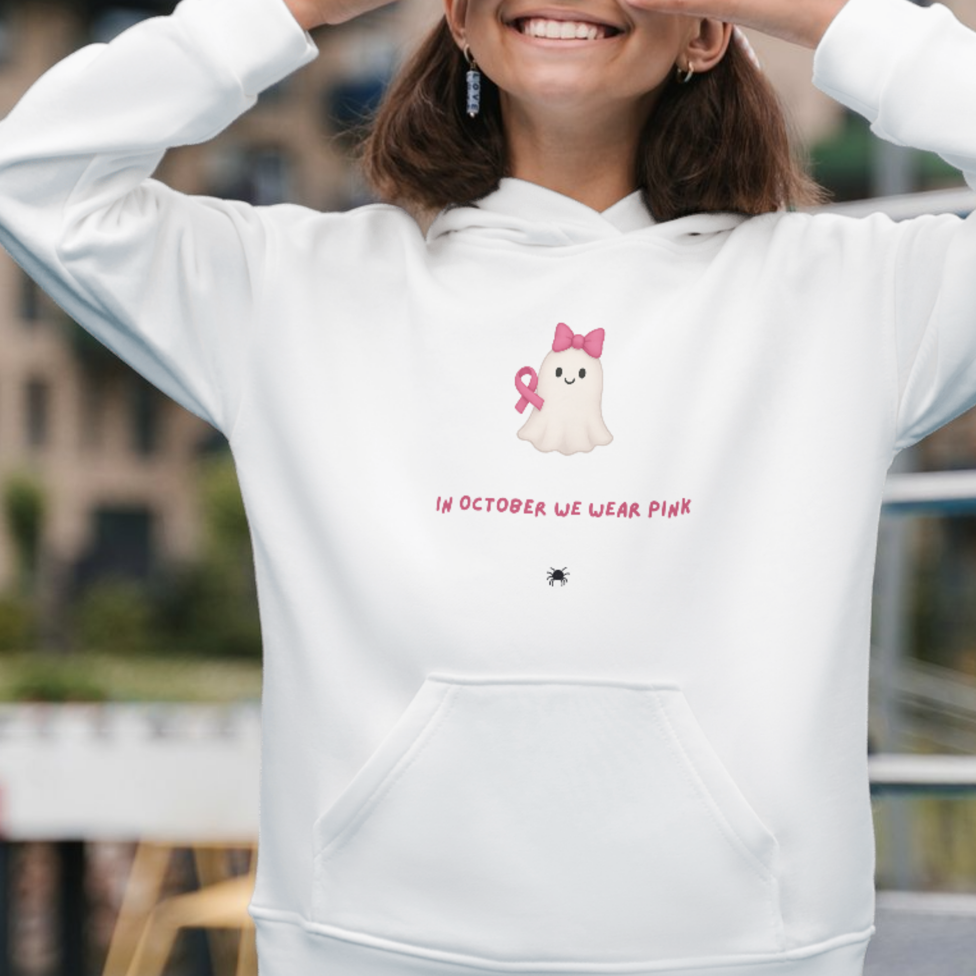 Bring a touch of pink to spooky season with this In October We Wear Pink design — ideal for crafters, makers, and anyone who loves feminine Halloween style.